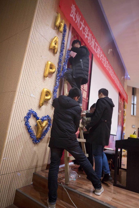 在晚会的前期准备工作中,现代制造技术教育部重点实验室及机械工程学院研究生会的同学认真负责地布置会场,准备道具,努力为大家献上最好的晚会。